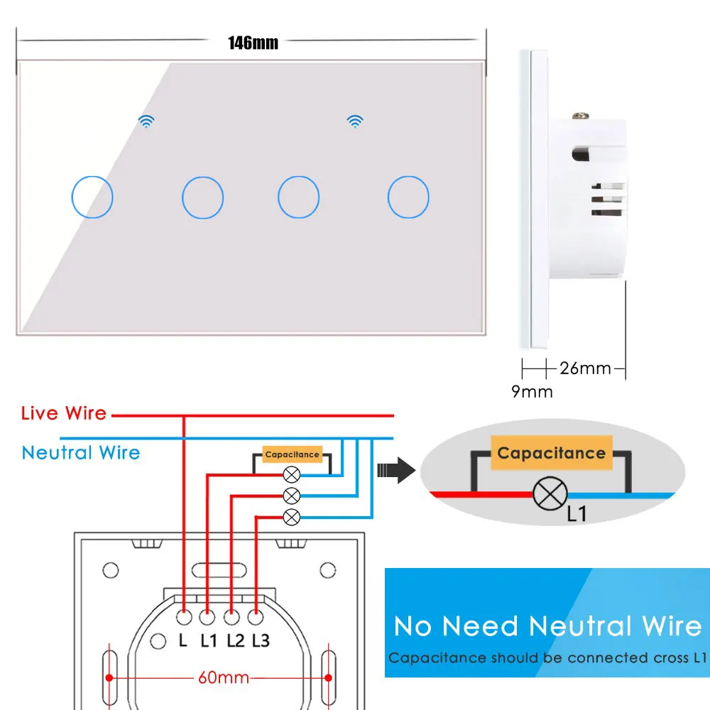 1. Поддерживает большинство ламп. Мы предлагаем использовать более 5 Вт Светодиодный светильник для L1. Не поддерживает лампы с регулируемой яркостью.2. Конденсатор должен быть соединен с L и N лампы L1. Не за переключателем.3. Этот переключатель является однополюсным, и он поддерживает только 1 способ управления.