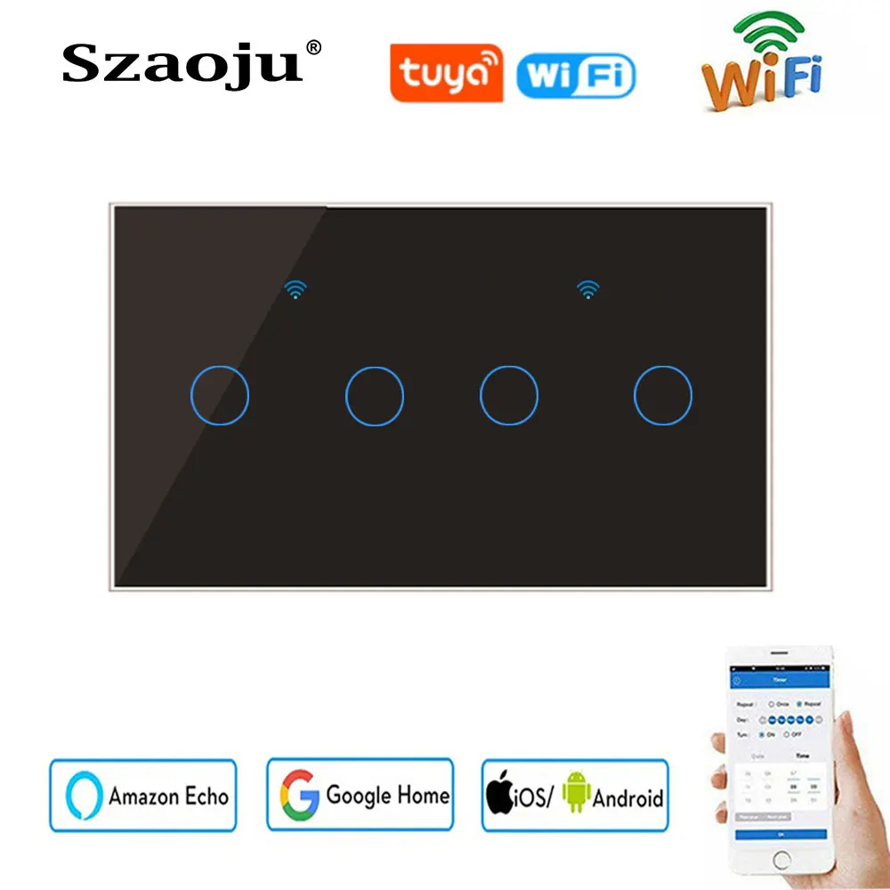 Умный сенсорный выключатель Szaoju TUYA с Wi-Fi, настенный выключатель для умного дома, 1 клавиша, 1 канал, 110-250 В