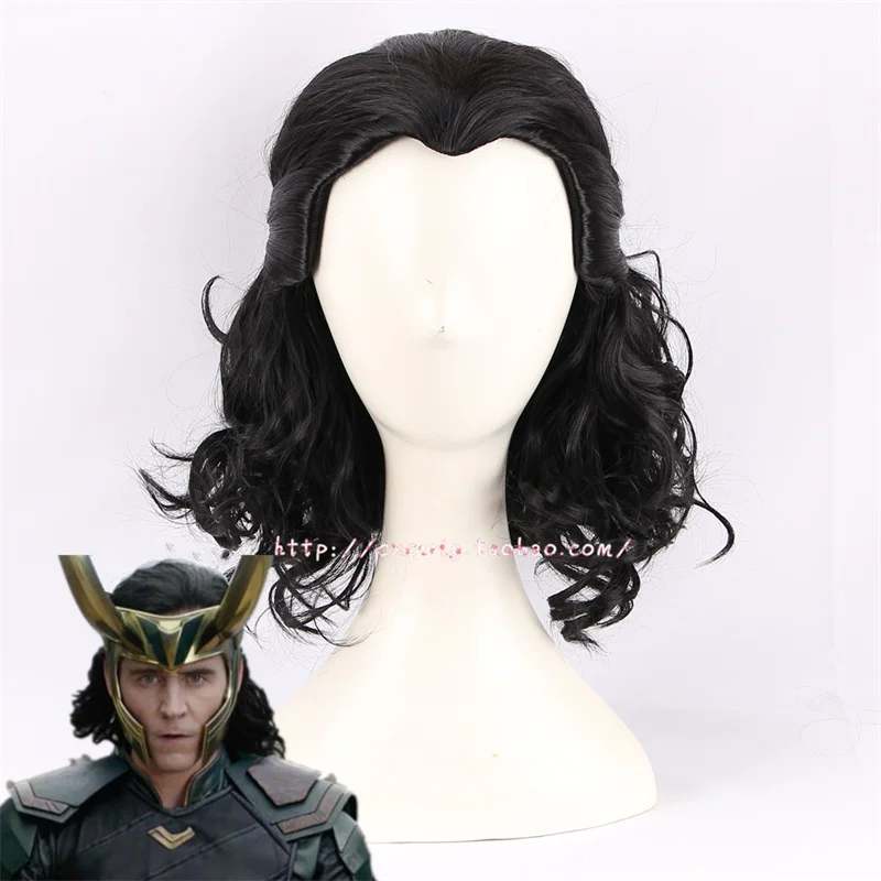 Парик Loki мужской для косплея, комикс из черных волнистых волос в стиле Хэллоуин, ролевые костюмы, вечерние парики и шапочка