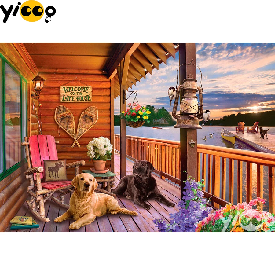 Алмазная картина с квадратными стразами BX1557, вышивка крестиком 5D с изображением собак в озере, стразы, мозаика для домашнего декора, подарок
