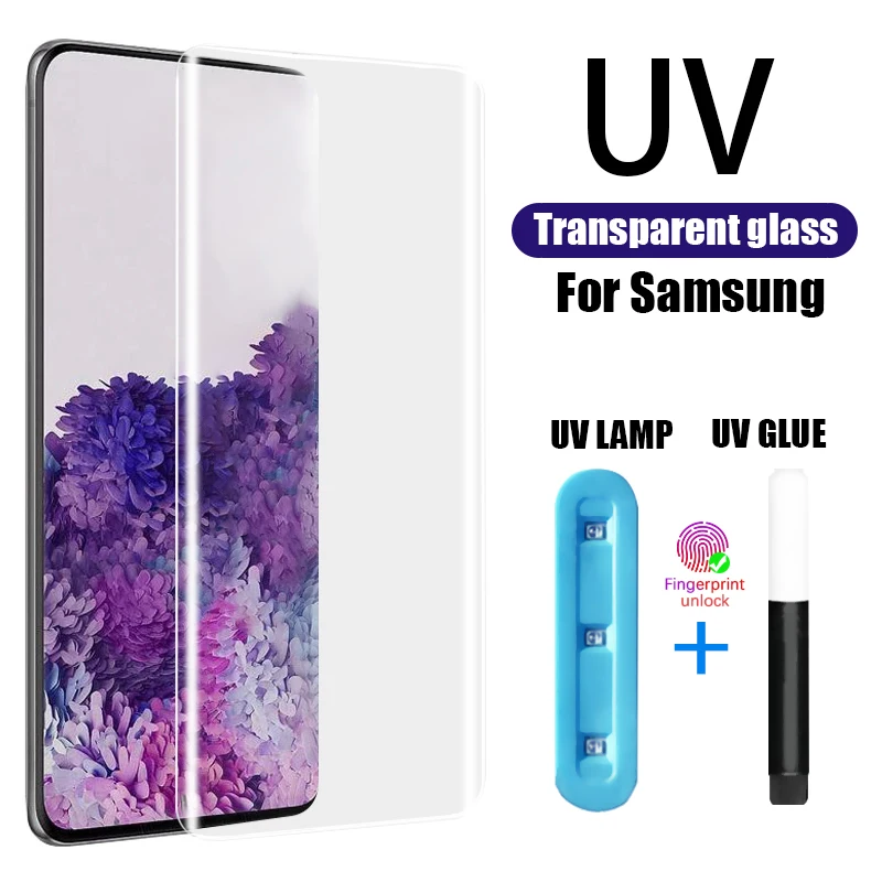 Закаленное УФ-стекло для Samsung S21 Plus S20 Ultra Note 20 8 9 10 S S10 Plus S8 S9 S20 Note20
