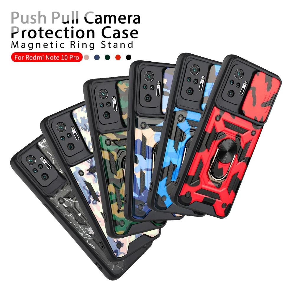 Ударопрочный камуфляжный чехол-подставка с кольцом для Xiaomi Redmi Note 10 Pro, нажимной чехол для телефона Mi 11i 10s K40 Poco X3 F3