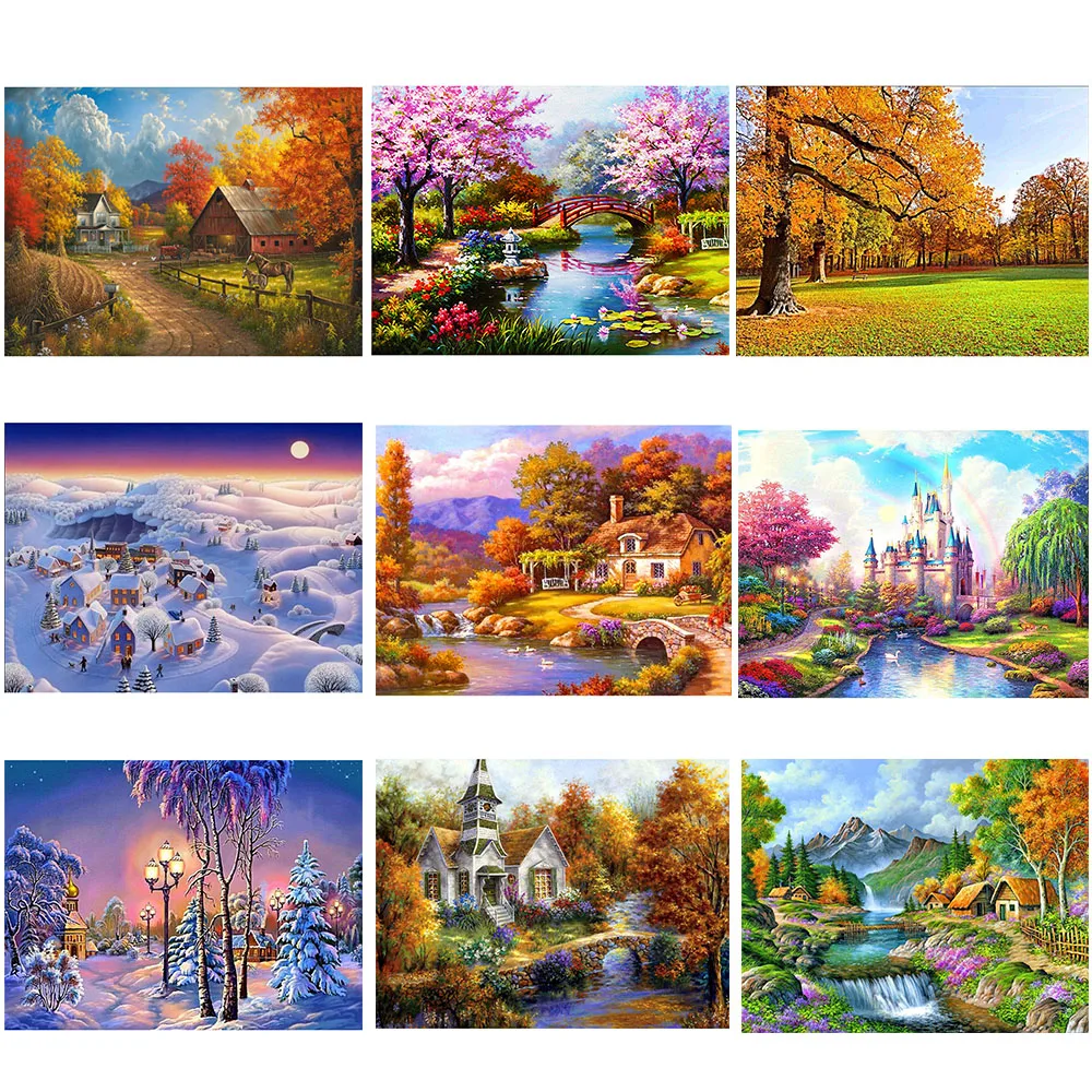 5D алмазная живопись сделай сам, пейзаж, полная круглая вышивка, пейзаж, мозаика, вышивка крестиком, картина Стразы, домашний декор