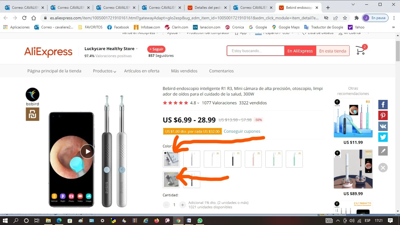 Привет! Я думал о покупке указанной камеры с верхним стрелком, и я получил запасной, который указывает нижний стрелку... Я отправил сообщение продавцу, потому что Он сбивает с толку, и это то, что случилось со мной. Я предложил ему добровольное возмещение, потому что думаю, что это недоразумение. И я не открыл спор. Привет.