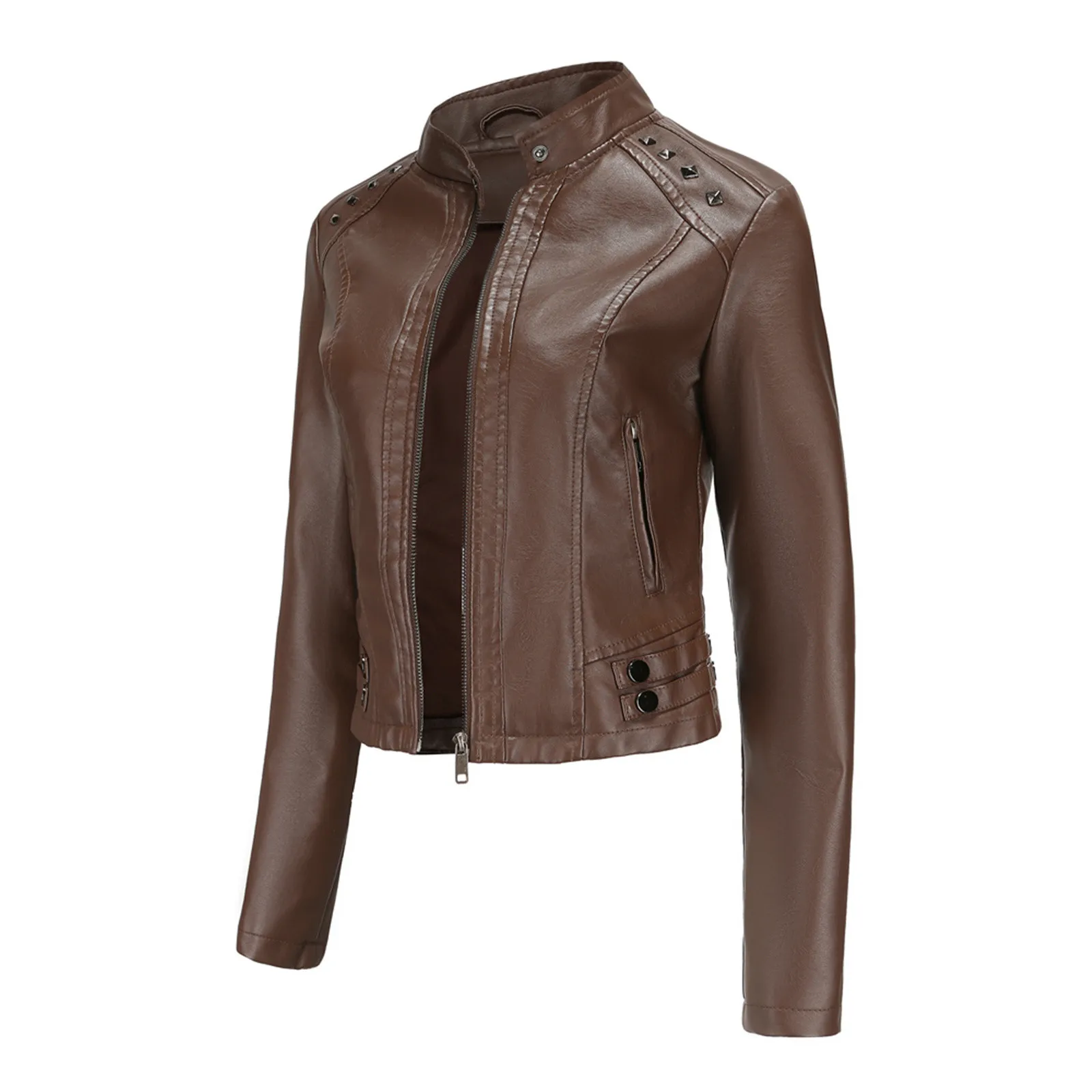 Женская крутая куртка из искусственной кожи с длинным рукавом на молнии приталенное пальто осенняя короткая куртка