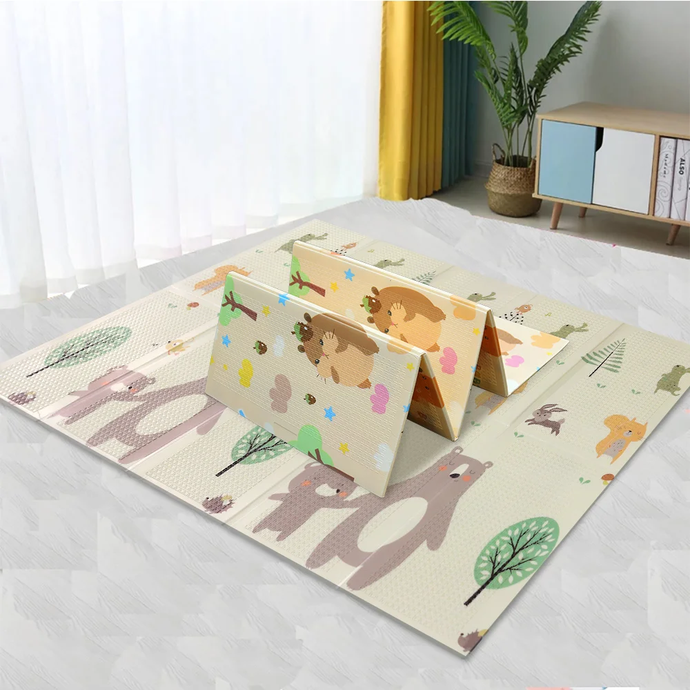 Коврик, который легко складывается, можно компактно упаковать в сумку для переноски, не занимая много места для хранения. Двусторонний дизайн с разными цветами и узорами удивит вас и принесет ребенку больше ощущения свежести, чтобы пробудить его любопытство.