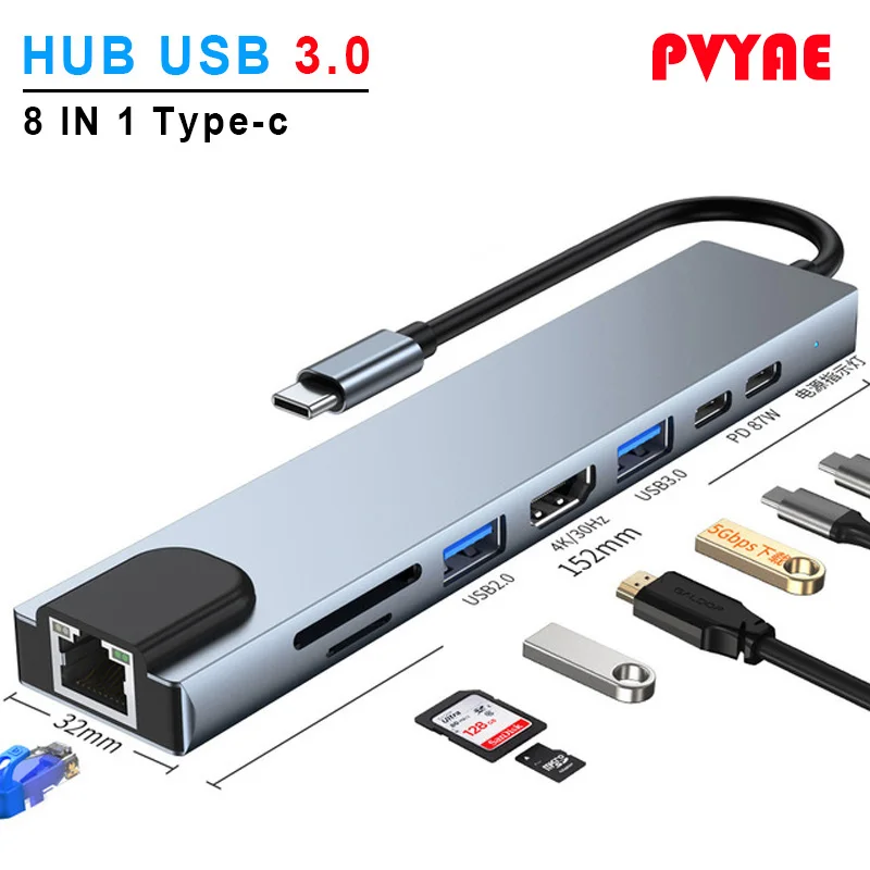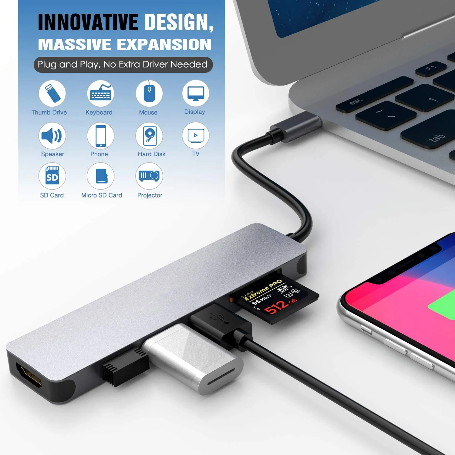 USB-концентратор типа C 3,1 на 4K HDMI-совместимый RJ45 USB SDTF кардридер PD Быстрая зарядка 8 в 1 USB-порт для MacBook Air Pro ПК концентратор