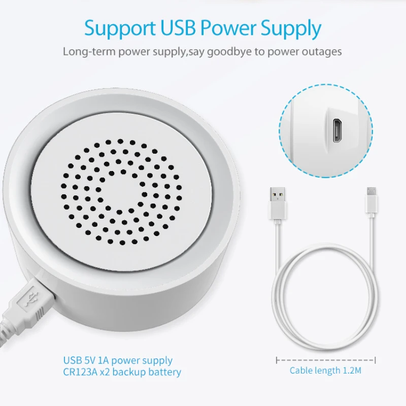 Когда Сирена используется, она должна использоваться в сочетании с шлюзом, через настройки параметров приложения, чтобы реализовать управление беспроводным звуком и сигналом на светильник.