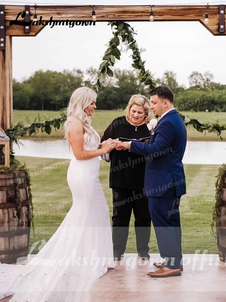 Кружевные свадебные платья на бретельках цвета слоновой кости с шлейфом и юбкой годе, свадебные платья Lakshmigown Robe de mariee Vestidos de Nova