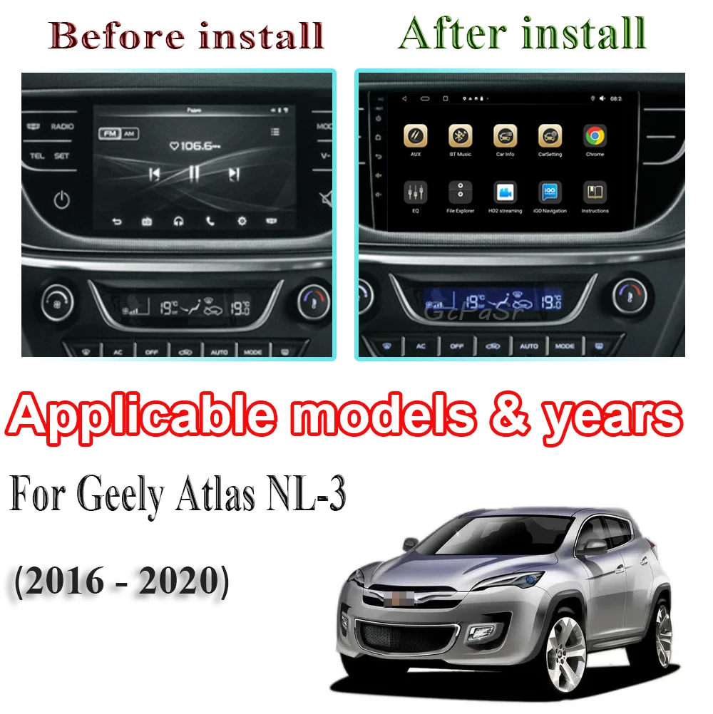 Автомобильная магнитола на Android 11 для Geely Atlas 2016-2020, автомобильное радио, мультимедийный видеоплеер, навигатор GPS, Android 10 No 2din