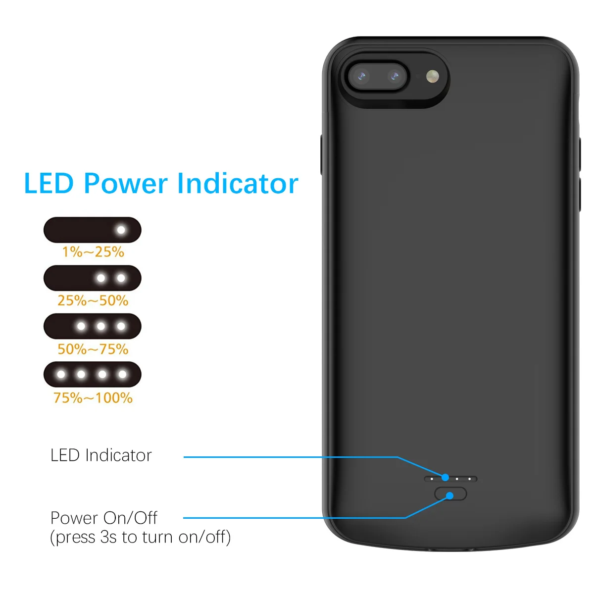 Чехол CASEWIN для iPhone 6, 6s, 7, 8, 5, 5S, 4000 мАч, внешний акку...