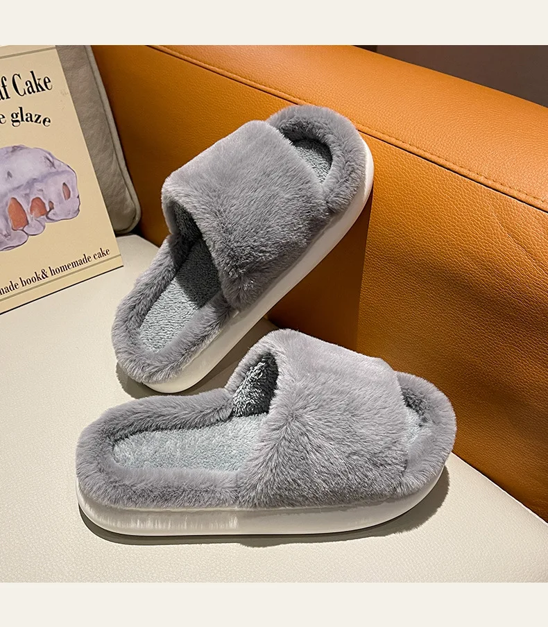 Зимние женские тапочки с толстым дном, меховые тапочки для дома, мя...