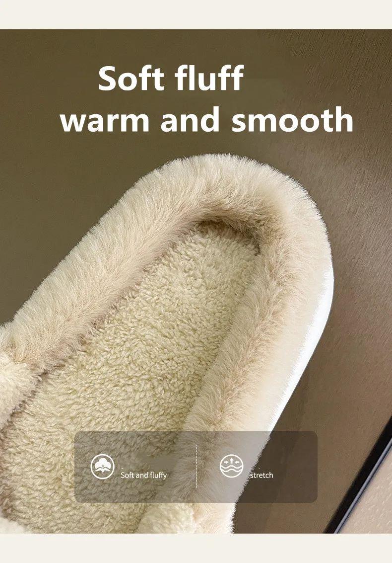 Шлепанцы женские зимние водонепроницаемые, меховые плюшевые шлепанц...