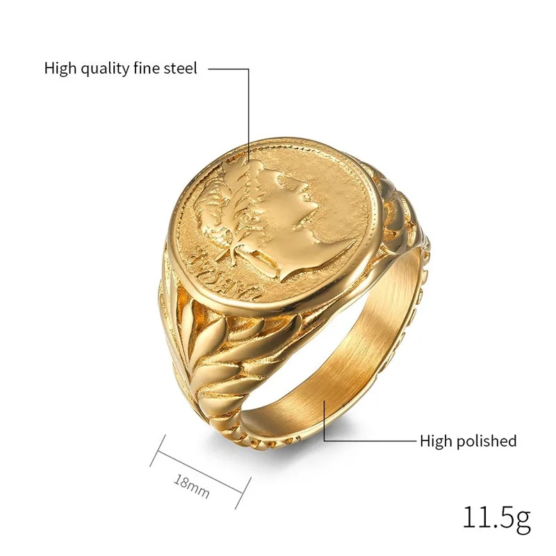Мужское кольцо с монеткой из нержавеющей стали, Винтажное кольцо с ...