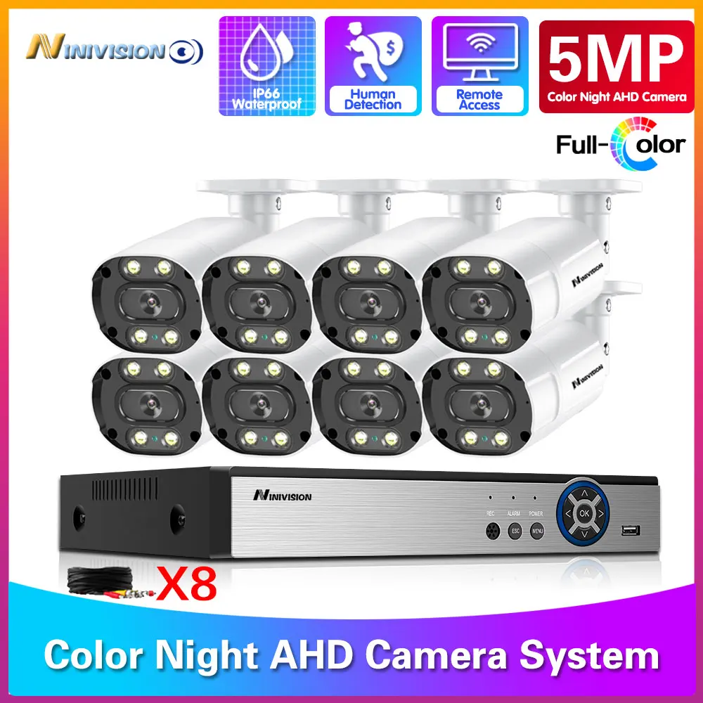 Система видеонаблюдения, 5 МП, AHD, 8 каналов, DVR, полноцветное ночное видение, 5 МП, HD, система видеонаблюдения, с почтовым оповещением