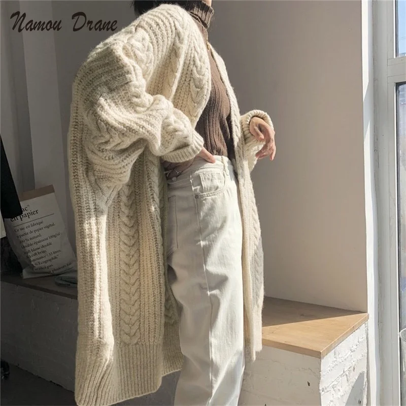Женский вязаный кардиган BGTEEVER, длинный, плотный, теплый, винтаж...