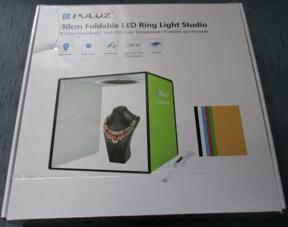 Посылка в коробке 30 см1. Основная студийная коробка (кольцевая светодиодный панель) x 12. Мягкая сумка x 13. Черные фоны x 14. Белые фоны x 15. Желтые фоны x 16. Красные фоны x 17. Синие фоны x 18. Зеленые фоны x 19. Руководство пользователя x 1