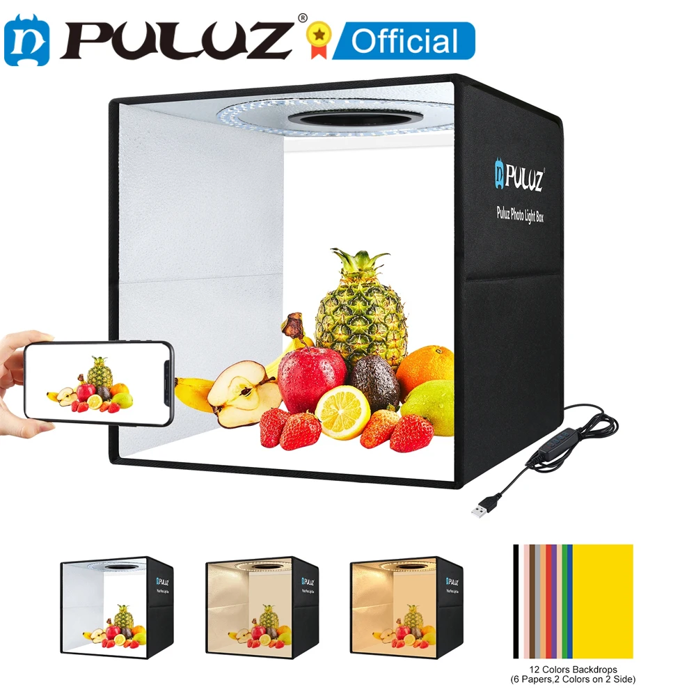 PULUZ 80 60 40 30 25 см фотозона студийное фото кольцо светодиодный световой короб настольный лайтбокс цвета фоны фотографии мягкая палатка для съемки коробка фон для фотосъемки фотофон фотообои реквизит для фотосъемки сбить цену фотоальбом фото фон