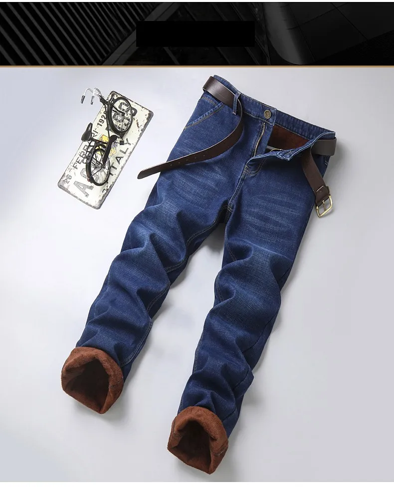 2021 зимние теплые мужские джинсы с флисовой подкладкой, толстые Стрейчевые джинсы, прямые брендовые высококачественные хлопковые брюки для мужчин, большие размеры