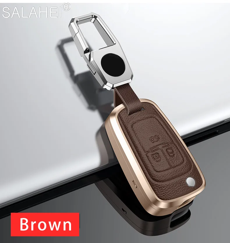 Чехол для автомобильного ключа из алюминиевого сплава и кожи, чехол...