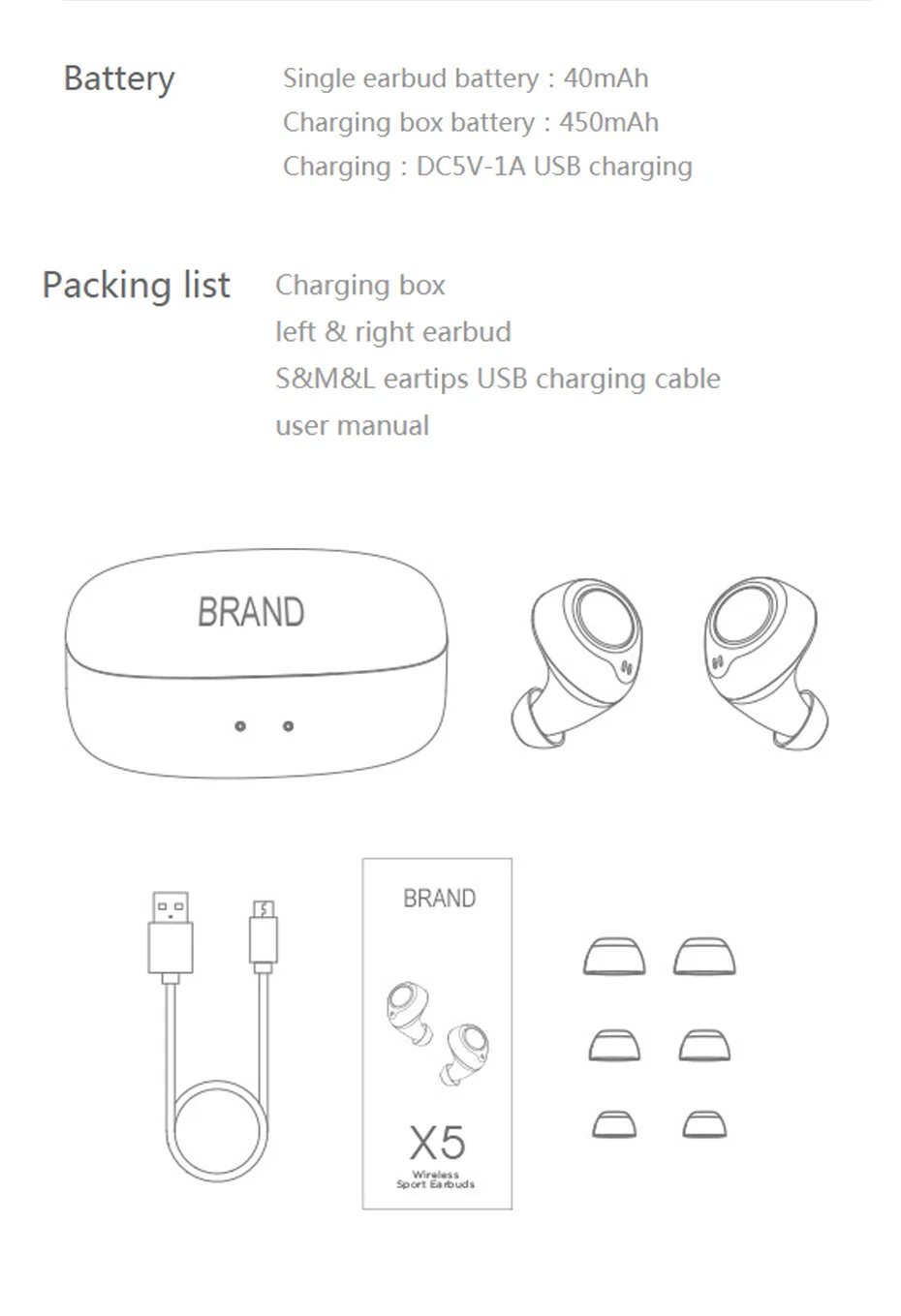 Беспроводные Bluetooth-наушники X5 True Wireles с шумоподавлением