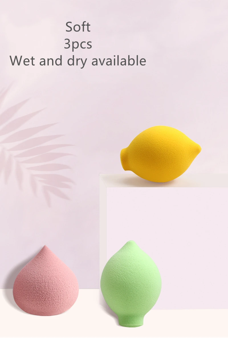 3 шт., косметическое Пышное яйцо для красоты, Гладкий женский макияж, основа для макияжа, губка, инструменты для макияжа и аксессуары, инструмент для макияжа в форме лимона