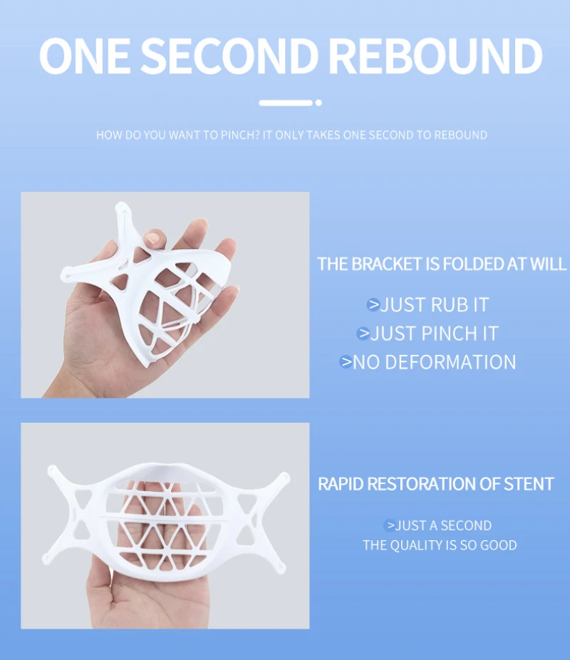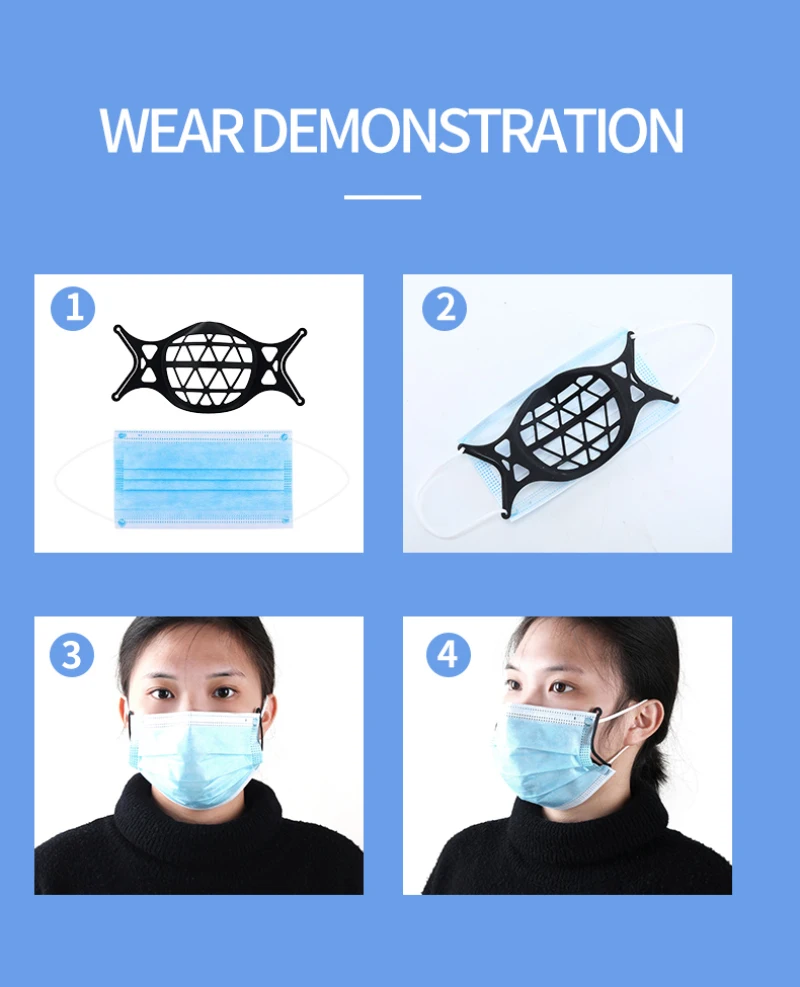 Многоразовая 3D маска для лица, кронштейн для поддержки внутри, удобный дышащий силиконовый держатель для маски