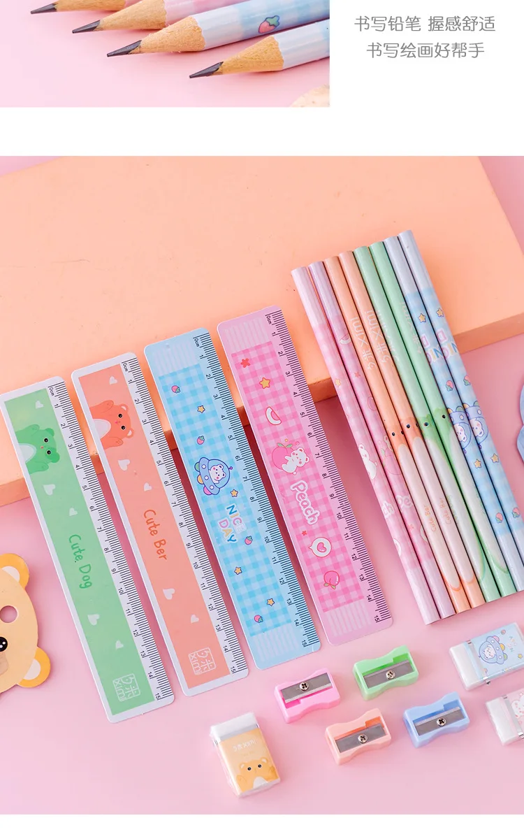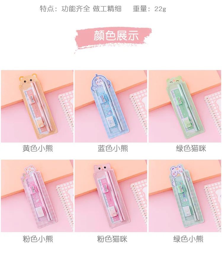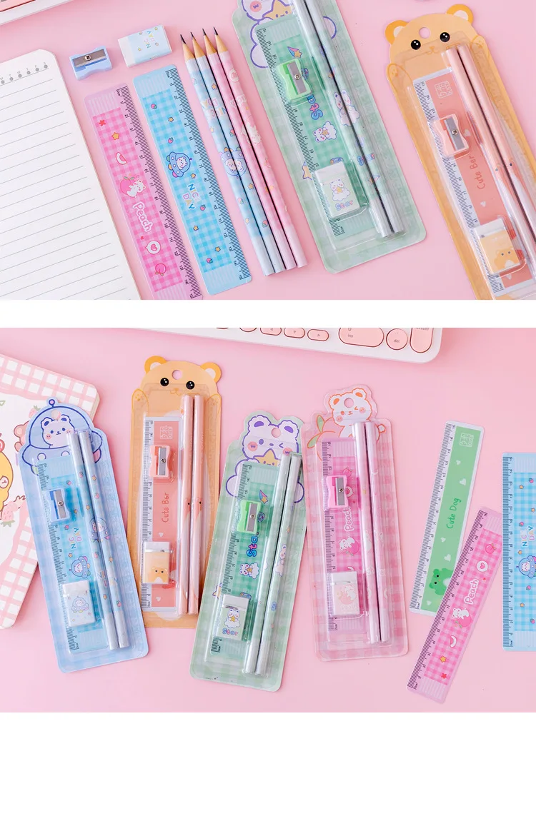5 шт./набор, Мультяшные карандаши с изображением медведя, кошки, ластик, точилка для линейки, школьные принадлежности для учащихся, канцелярские принадлежности для школы 2021