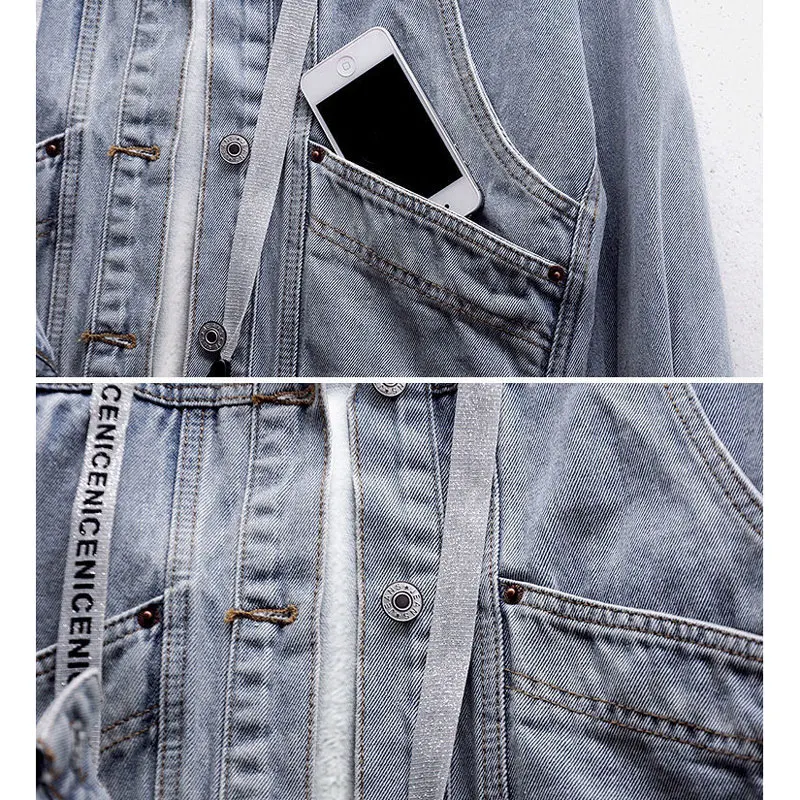 Korean style 2021 New denim jacketscasual jackets detachable hat