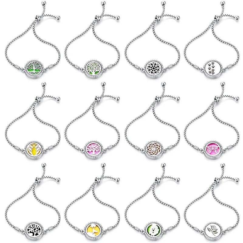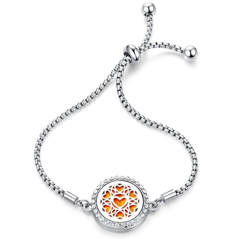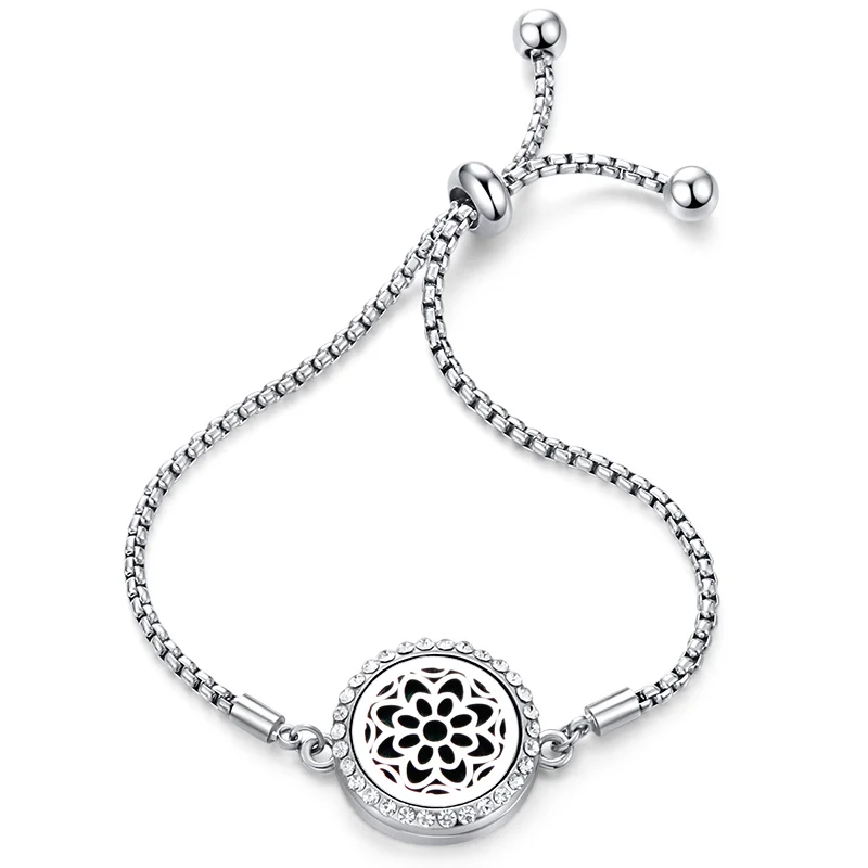 Браслет из нержавеющей стали с регулируемым кристаллом и диффузором для эфирных масел