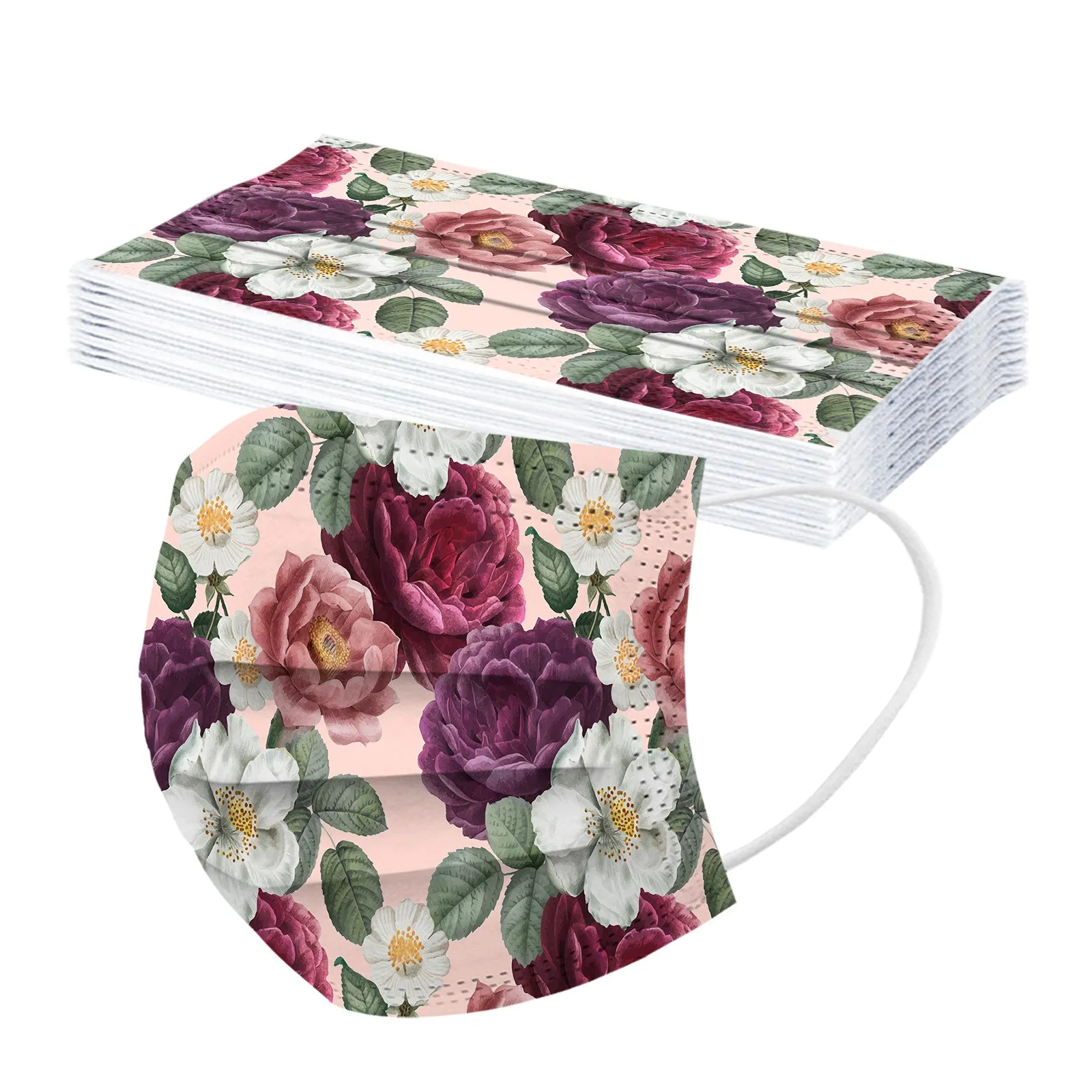 10 шт. модная маска с цветами для женщин, одноразовая Защитная маска для лица для взрослых, маски для лица, украшение для вечеринки