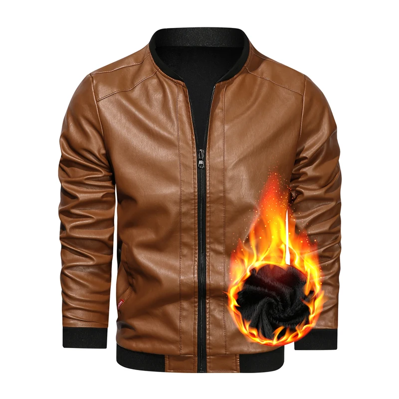 Мужская модная кожаная куртка, Мужская зимняя флисовая мотоциклетная куртка из искусственной кожи, Мужская ветровка, уличная куртка-бомбер