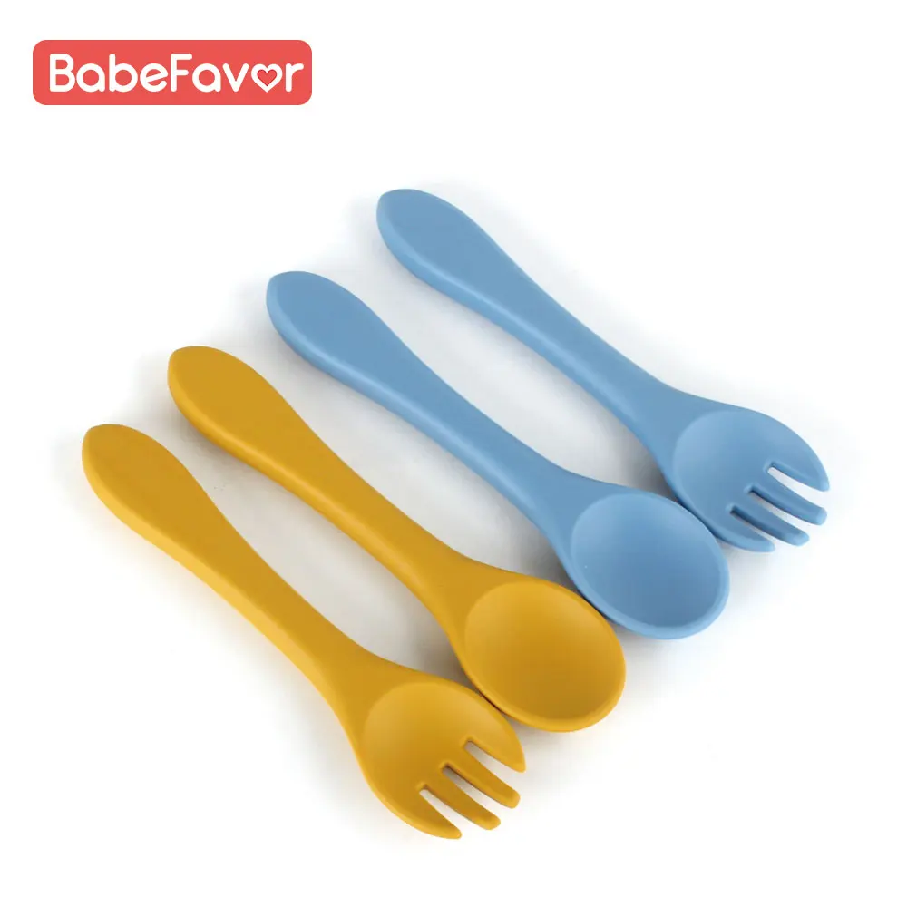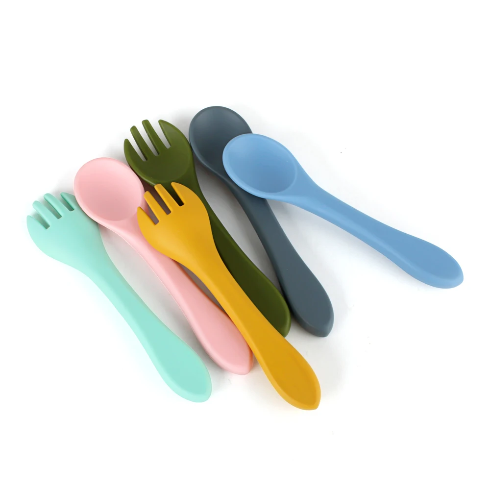 Soft Silicone Spoon Fork Set Cute Baby Feeding Tool Food Grade BPA Free Infant Tableware Toddler Kid Dishes Dinner Spoon and Fork Set