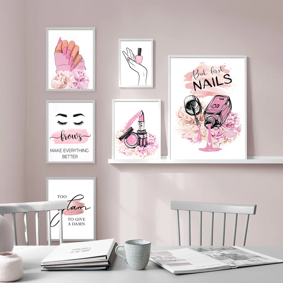 Ресницы, лак для ногтей, салонная помада, настенное искусство, холст, живопись, скандинавские плакаты и принты, настенные картины для гостиной, модный Декор