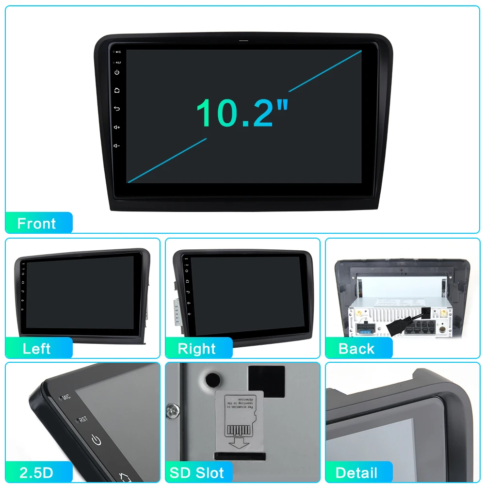 ОС: Android 10,0ЦП: RK3399, двойной Cortex-A72 + Quad Cortex-A53, 64-разрядныйОЗУ: 4 ГбПЗУ: 64 ГБГрафический процессор: Mali-T860MP4Радио: ST7708Bluetooth : CSR BC6Разрешение: 1024*600Экран: IPSПодсветка кнопок: RGB