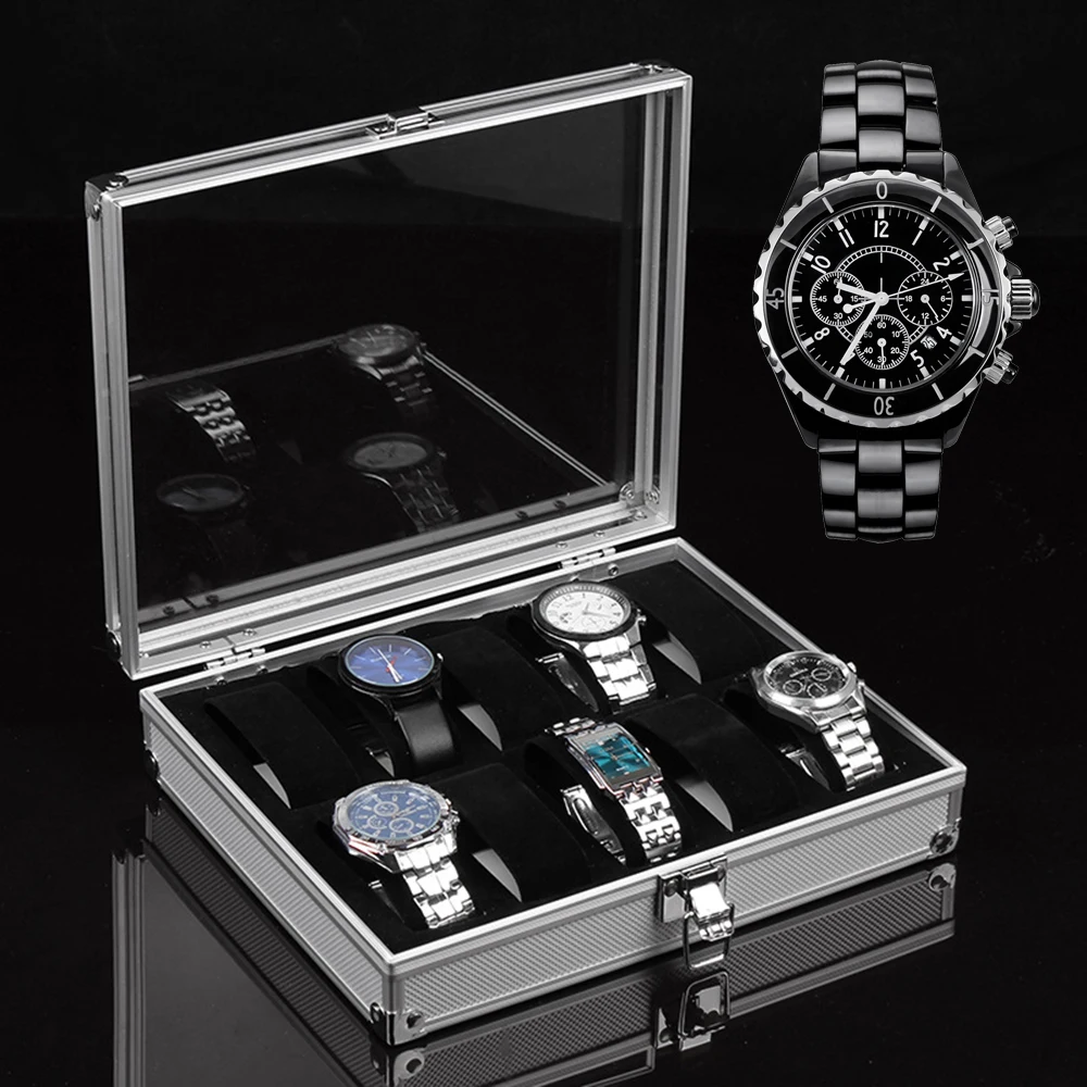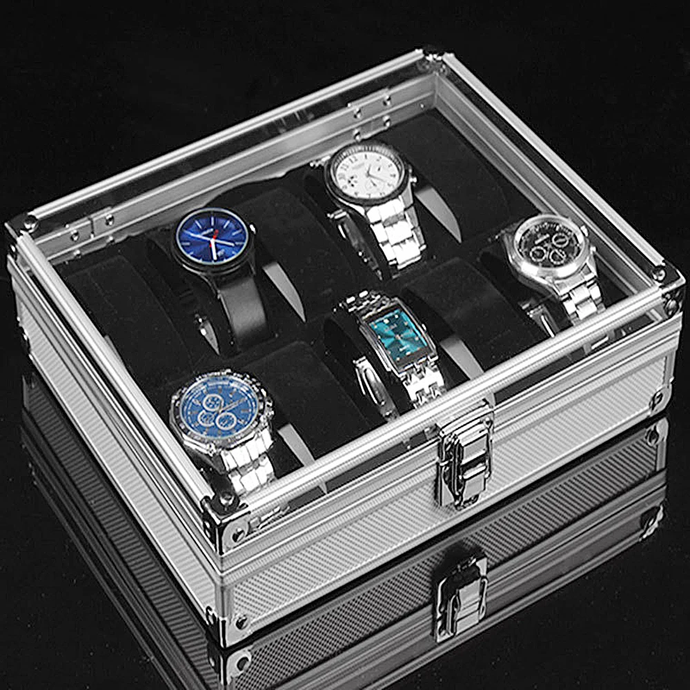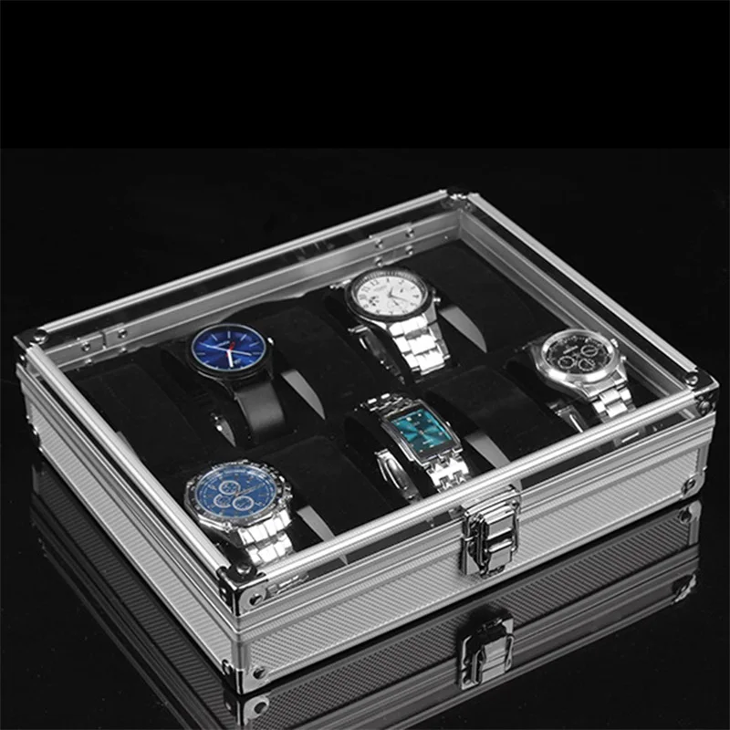 612 сетчатый Сейф для часов, коробка для хранения ювелирных изделий, часов из алюминиевого сплава, прозрачная подставка для часов, коробка для подарка
