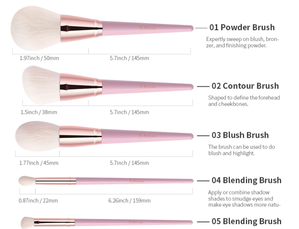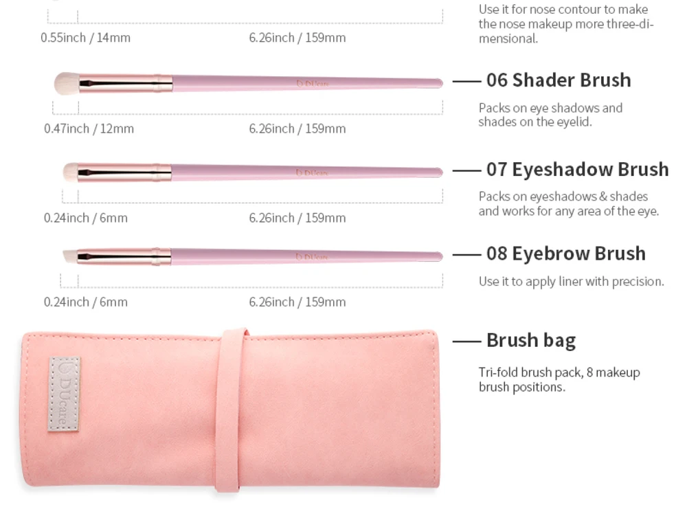 Набор профессиональных кистей для макияжа DUcare, 8 шт., кисти для растушевки теней, пудры, основы, бровей, косметические инструменты для лица и глаз