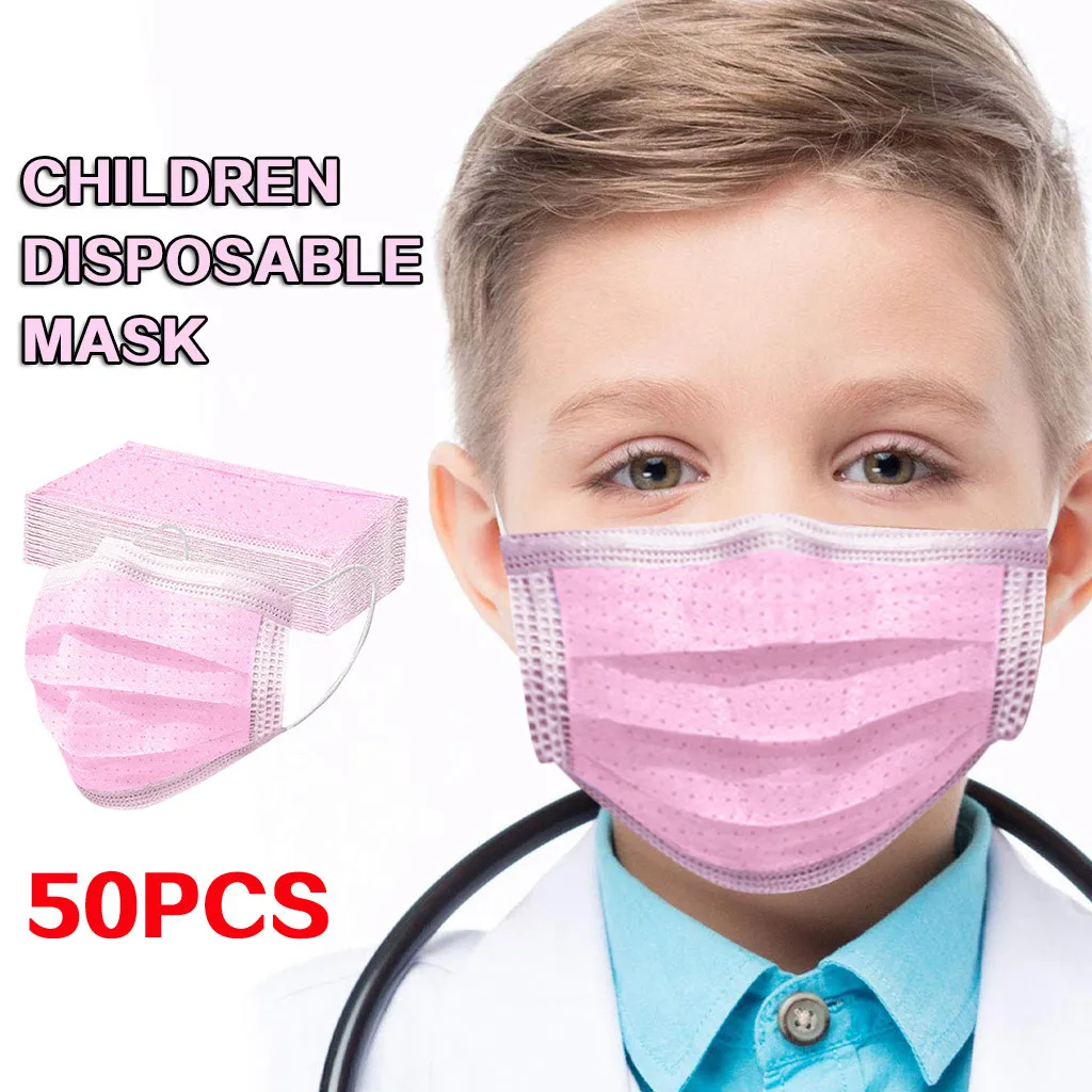 50 шт., Детские Одноразовые Дышащие маски, 3 слоя