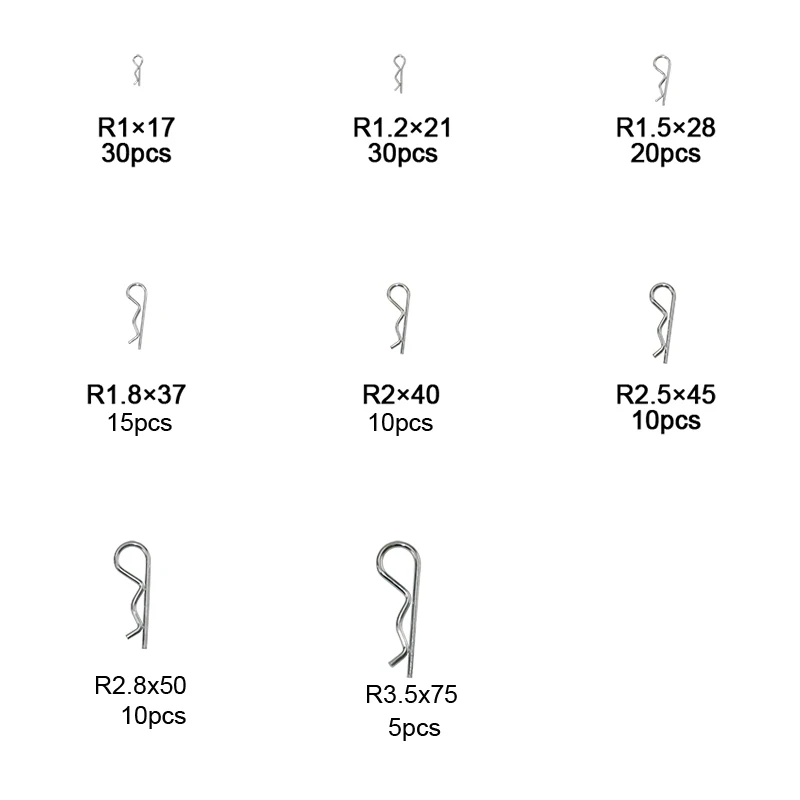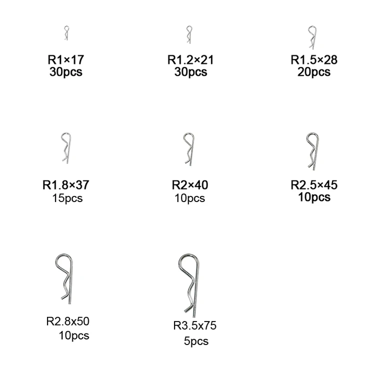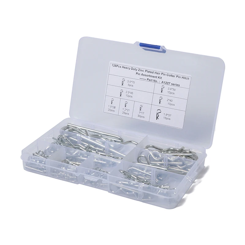 125 шт., углеродистая сталь, оцинкованный R-образный зажим, шплинтовое сцепное устройство, булавка, зажим, шпилька, ассортимент, набор для тракторов, автомобилей, грузовиков