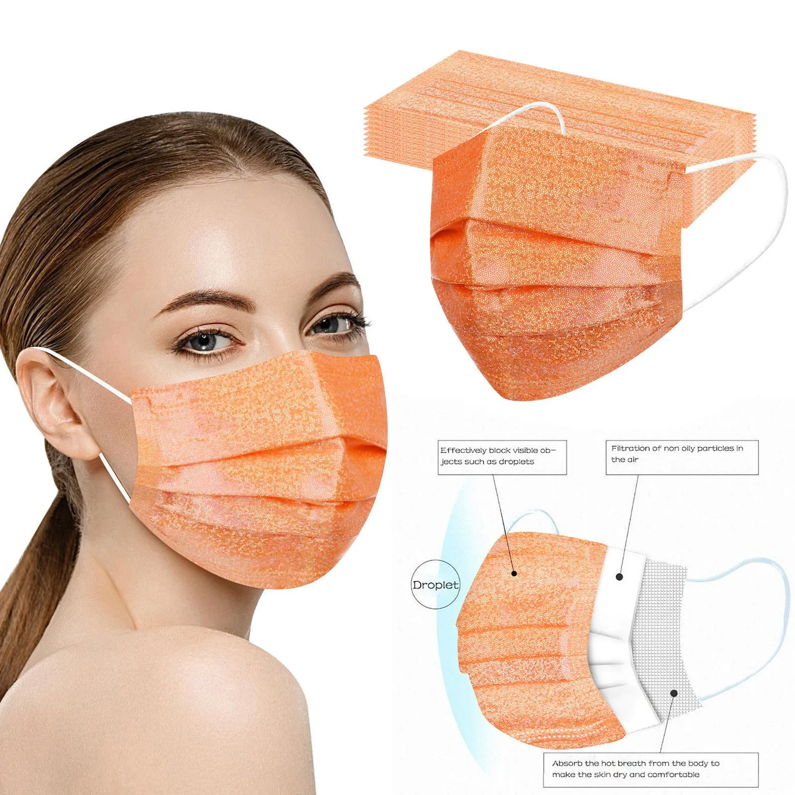 10 одноразовых лицевых масок, 3-слойные блестящие маски для взрослы...