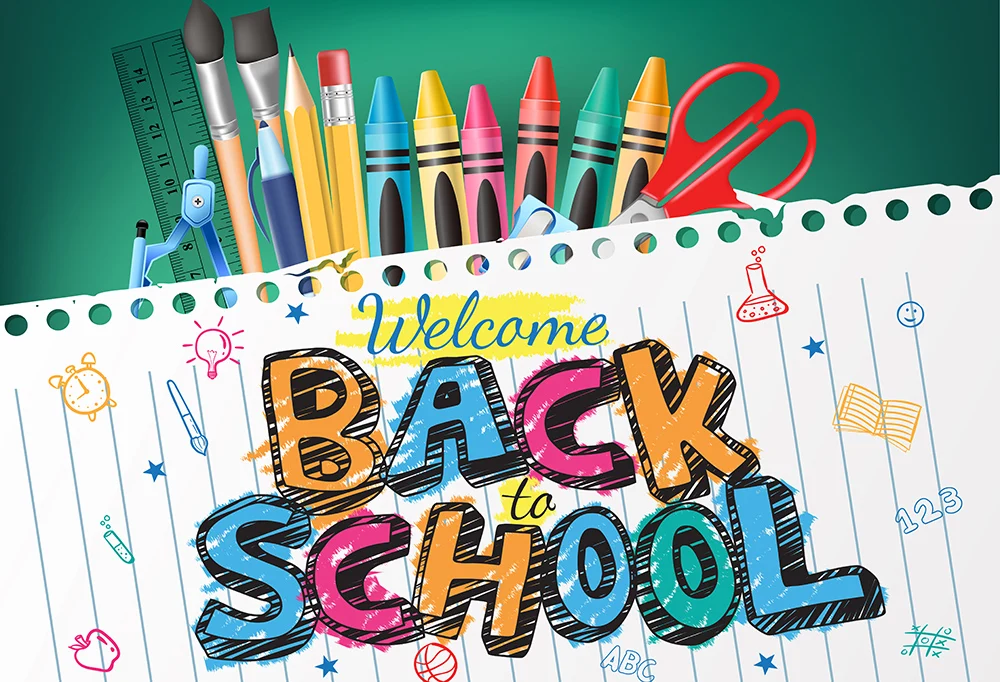 7x5FT Добро пожаловать Снова в школу слова часы книги зеленые листь...