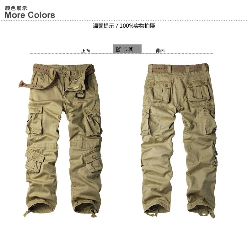 Брюки-карго мужские хлопковые, с 8 карманами, в стиле милитари, кра...