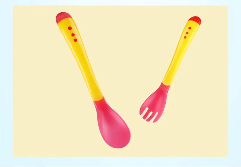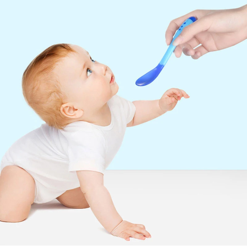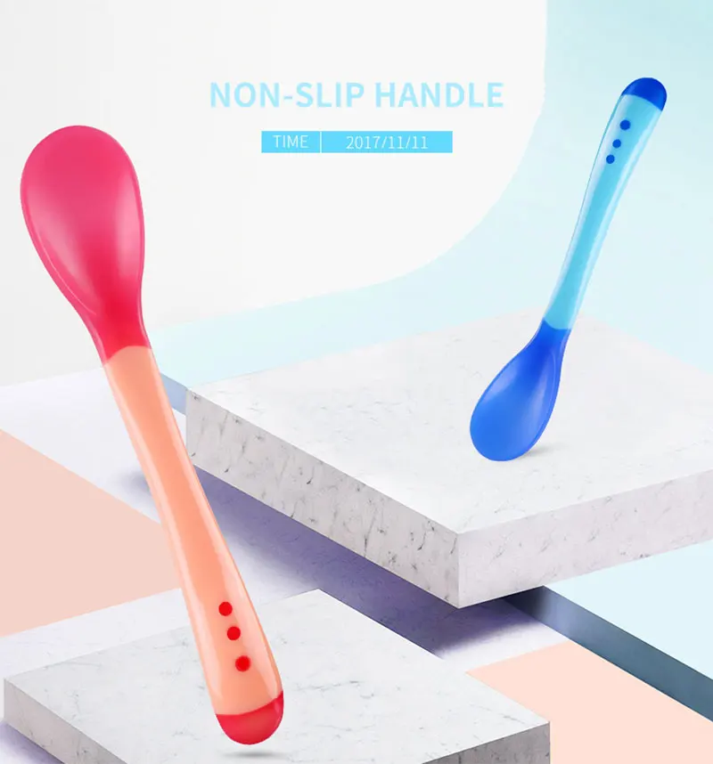 Ложка с датчиком температуры для детских столовых приборов, 3 цвета, ложки для кормления, безопасная мягкая силиконовая посуда для новорожденных, столовые ложки
