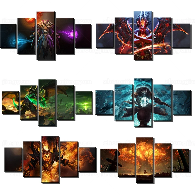 5 шт. DotA 2 огненные герои холст печать Абстрактная живопись игра плакат Современная Настенная картина спальня декоративный домашний декор