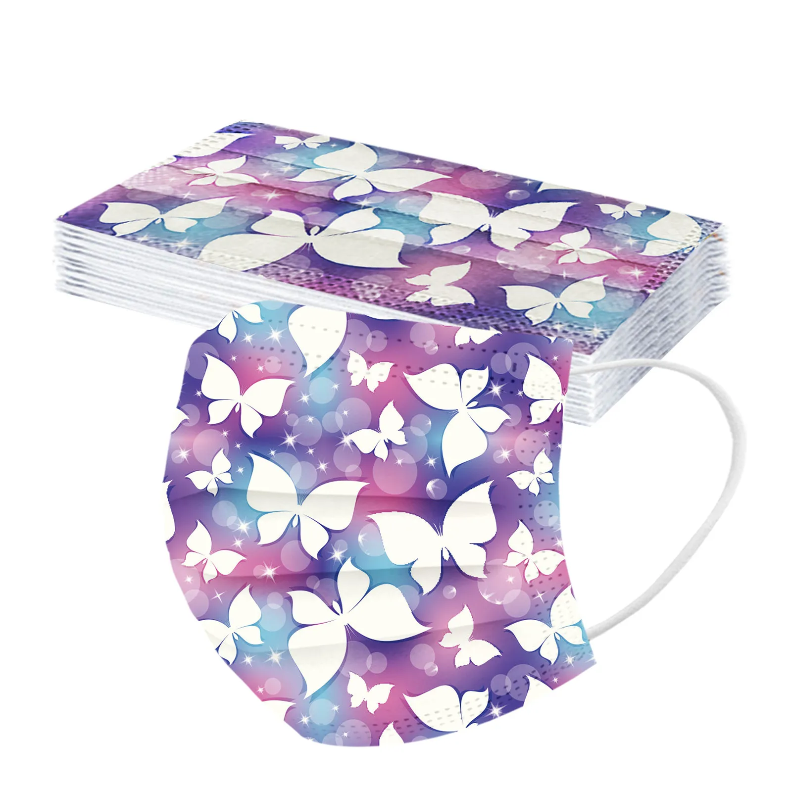 10-50 шт., одноразовые маски для лица с рисунком белых бабочек
