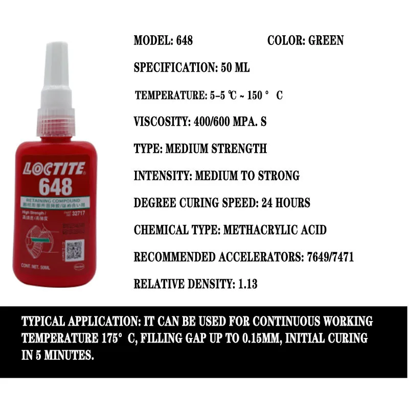 50 мл, Loctite 648, цилиндрические детали, удерживающий клей, высокопрочный, подшипник, фотомагнитный блокирующий агент