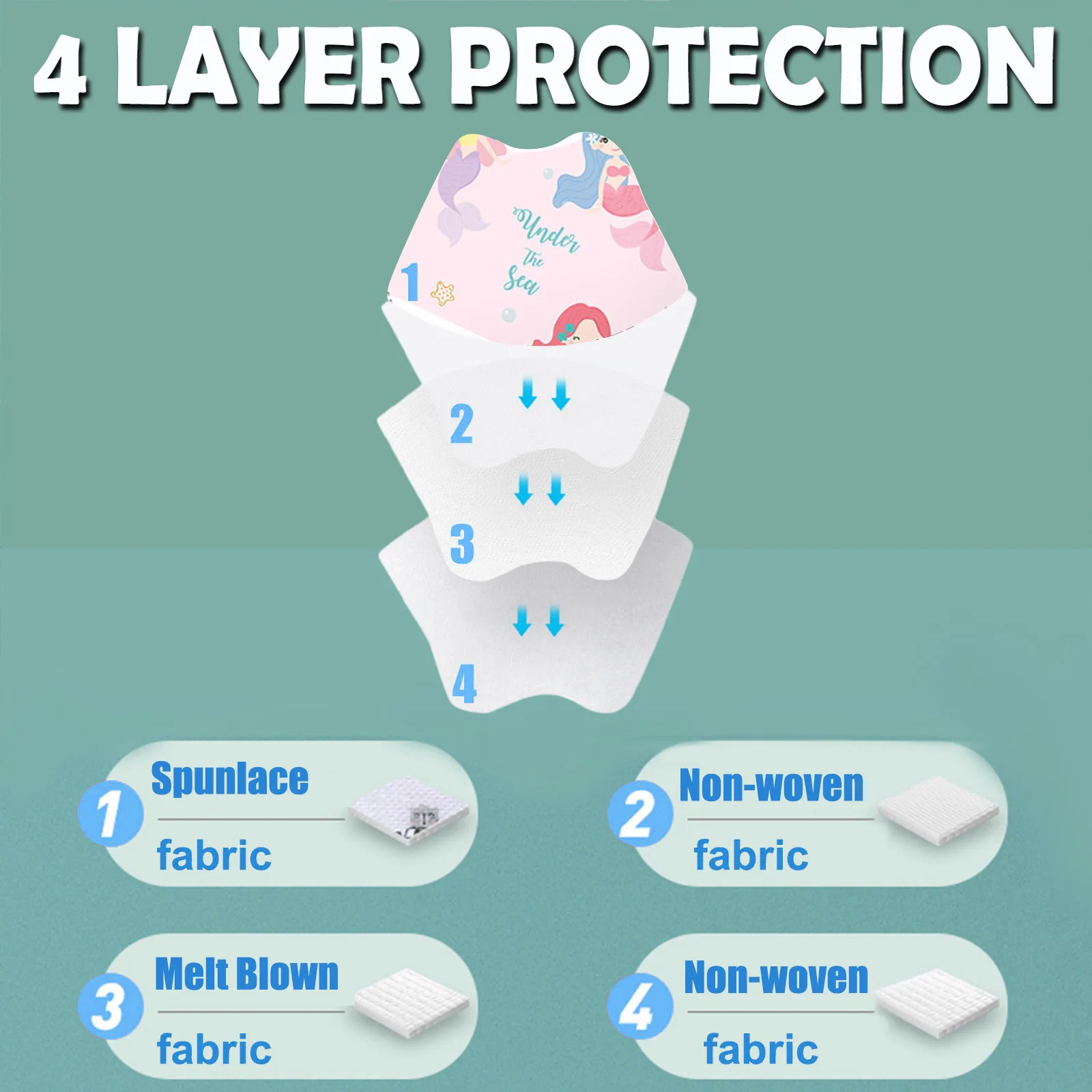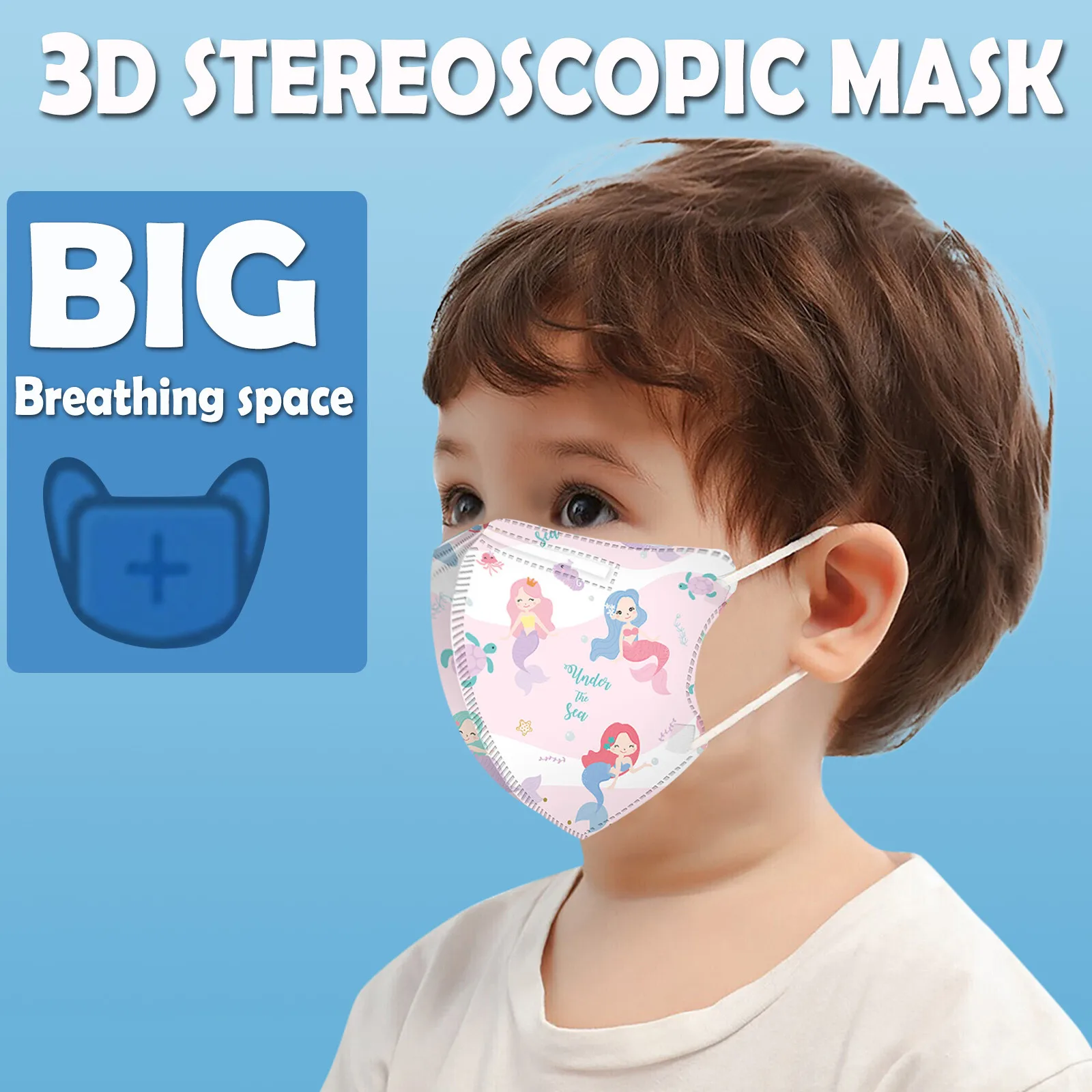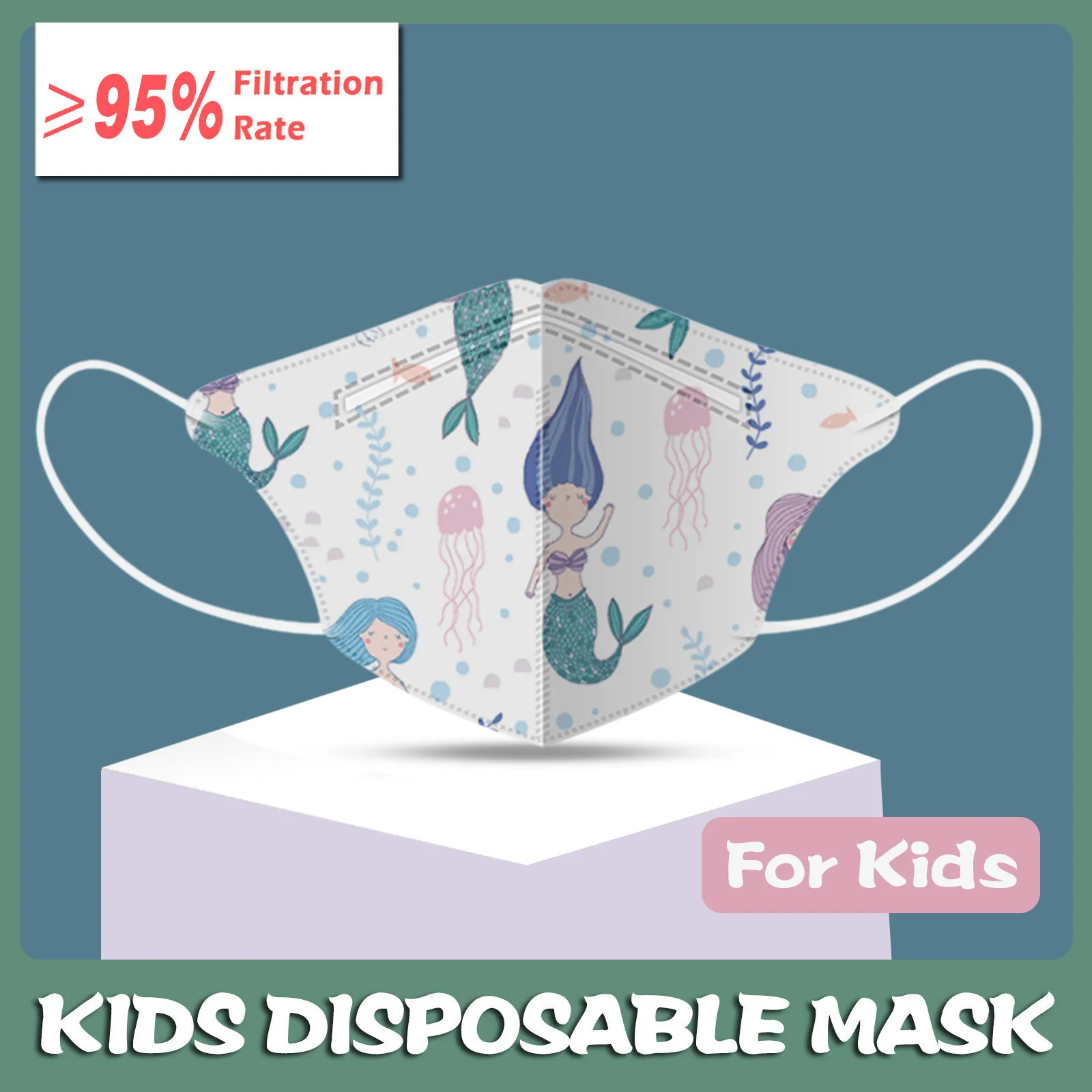 Детская маска для малышей, одноразовая маска для лица, Мультяшные 4-слойные маски для ушей