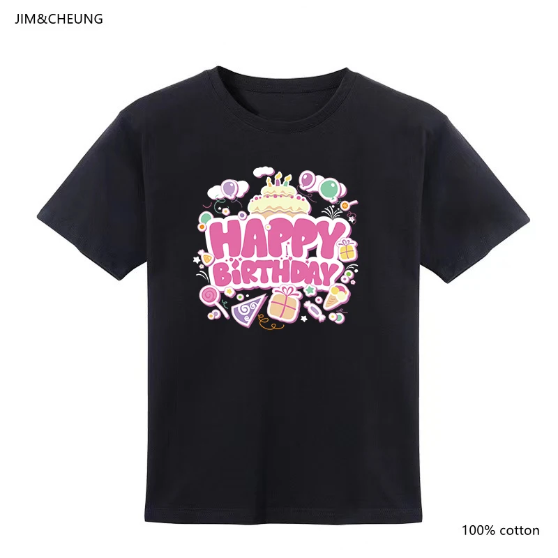 Футболка с надписью Happy Birthday, для мальчиков и девочек