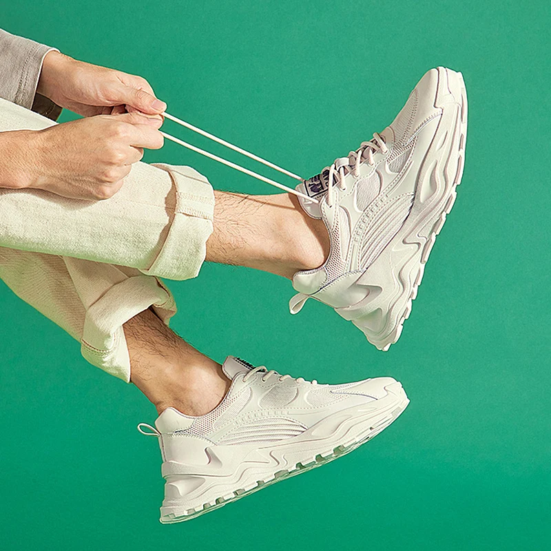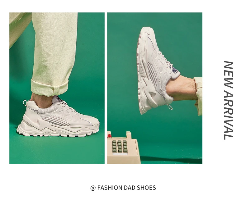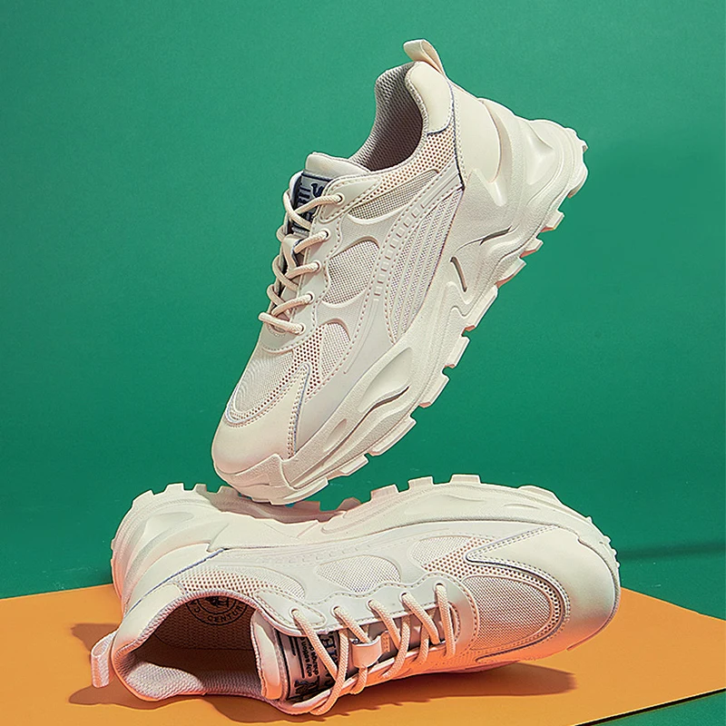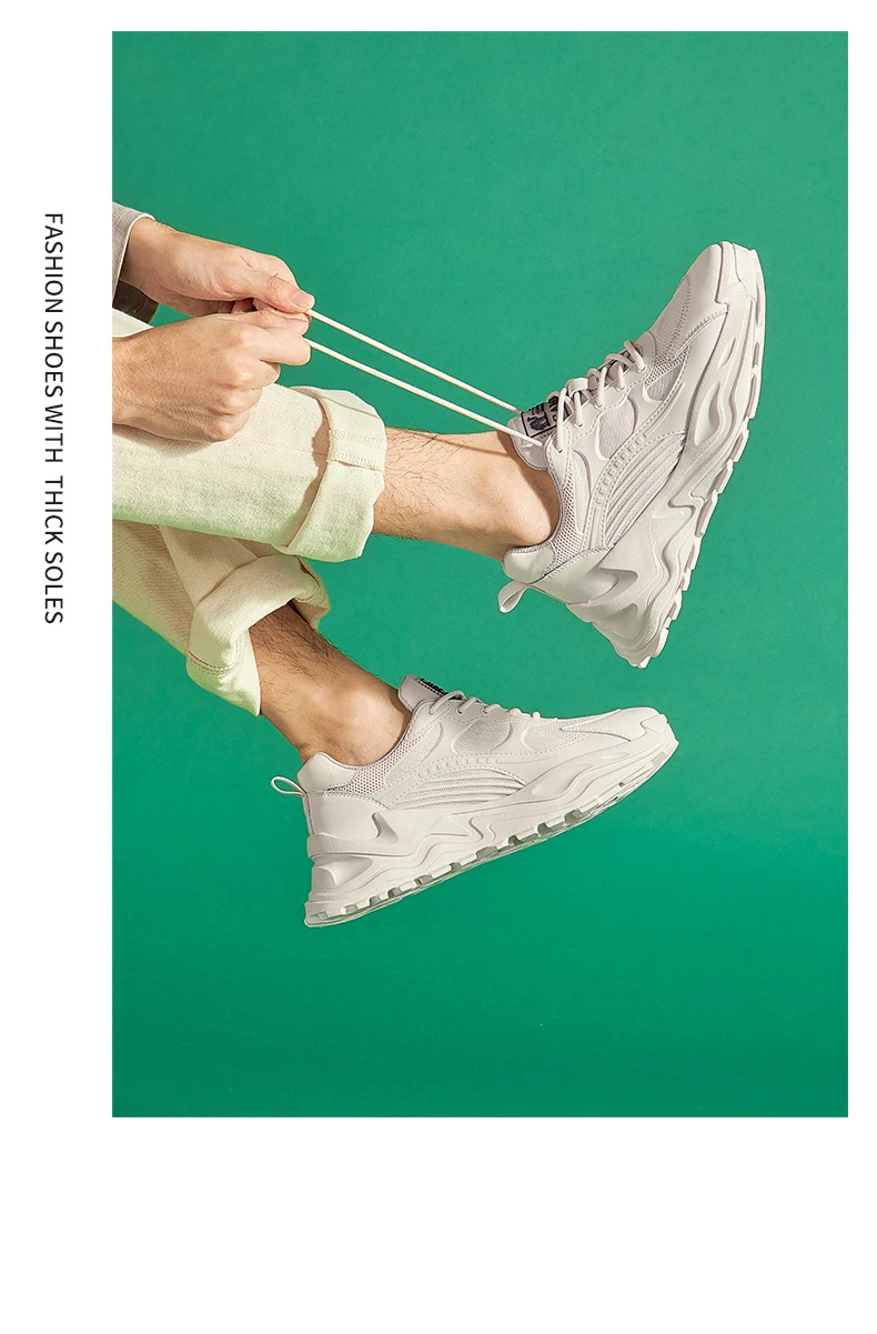 Кроссовки мужские сетчатые, на толстой подошве, дышащие, белые, осень 2021