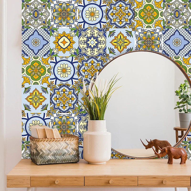 Наклейка для плитки в стиле ретро с цветочным узором, наклейка для ...